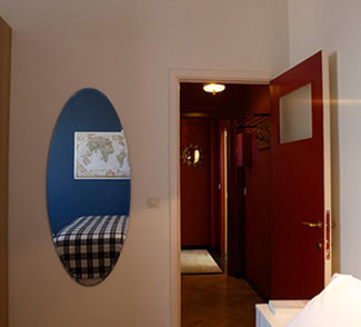 The bed room is equipped with a king-size bed 180 or two separated beds 90. From the window next to the desk you’ll overlook Béguinage and Koekelberg basilica. You will enjoy the large wardrobe. Sheets, towels and necessary for ironing are provided.